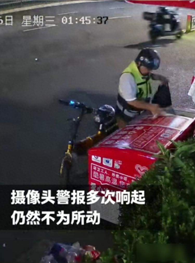 管冰箱的工作人員說,其實這男的幾乎天天來,早把規矩當耳旁風。按規定每人只能拿一瓶,可他愣是當免費超市逛。“明明知道這是給戶外辛苦人的,還敢指著攝像頭鬧。”工作人員抱怨,但覺得報警太小題大做,就當幾瓶水的事。