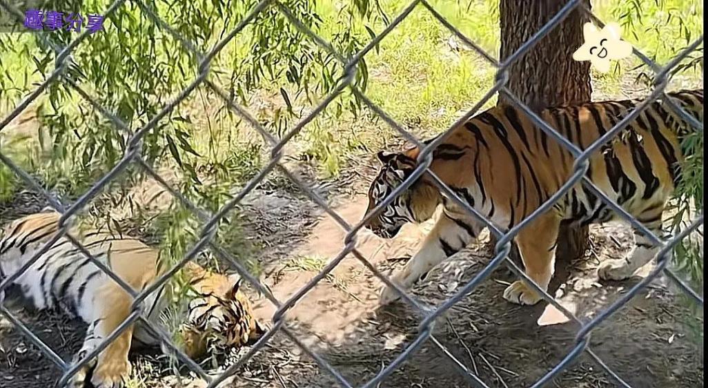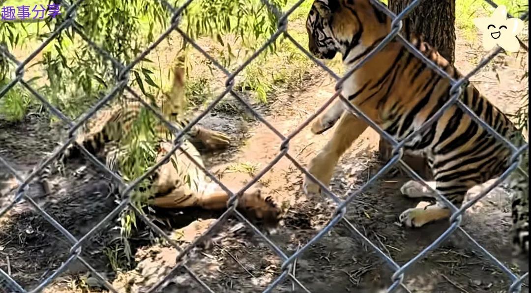 就在靠近同伴的瞬間,這只老虎猛地發(fā)出一聲低沉的吼聲,還猛地撲了一下。原本在休息的同伴被嚇得渾身一激靈,瞬間跳了起來,警惕地看向四周,發(fā)現(xiàn)是同伴的惡作劇后,不滿地吼了幾聲。而搞惡作劇的老虎呢,卻像個得逞的孩子,得意洋洋地晃著腦袋,仿佛在說:“大家票不白買嗷,這精彩表演夠你們回味一陣啦!”
