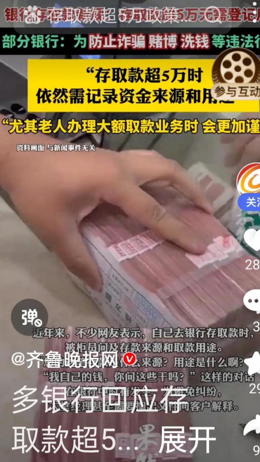 部分銀行基于自身風控考慮,仍然保留了5萬元以上現金存取登記的要求。