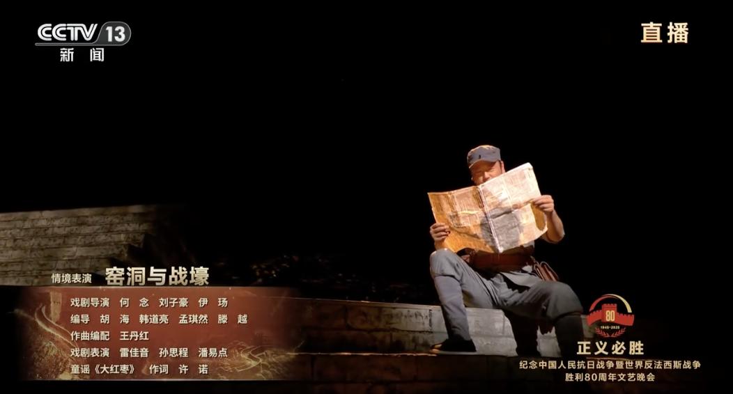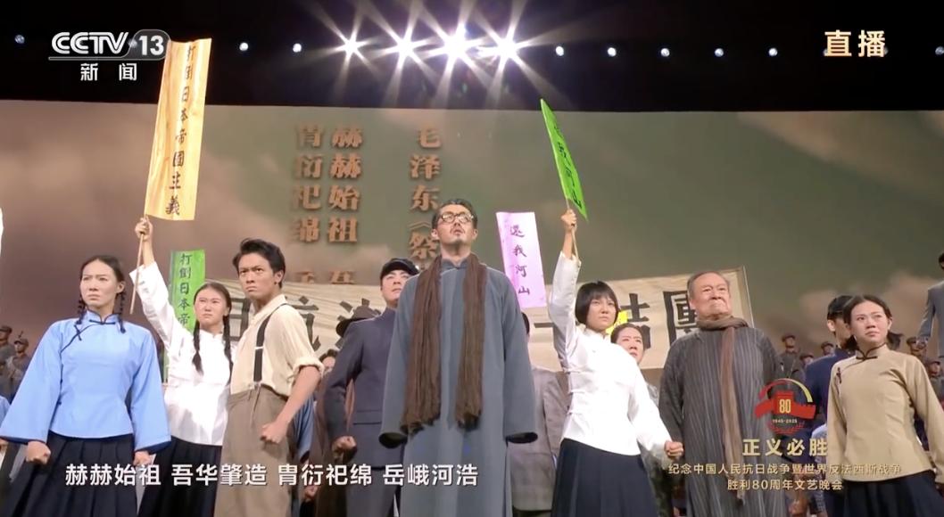 9月3日晚上8時,紀念中國人民抗日戰爭暨世界反法西斯戰爭勝利80周年文藝晚會《正義必勝》在北京人民大會堂舉行。晚會以“銘記歷史、緬懷先烈、珍愛和平、開創未來”為主題,分為6個部分,5大篇章。