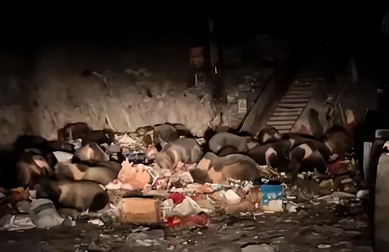 西藏昌都市邊壩縣垃圾場,夜間被拍到有20多頭的藏馬熊在翻垃圾,找吃的。