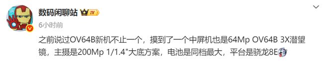 其次,博主強調這是“中屏機”,推測屏幕尺寸在6.5-6.7英寸之間,分辨率可能延續400系列的2736×1264(約1.5K)。