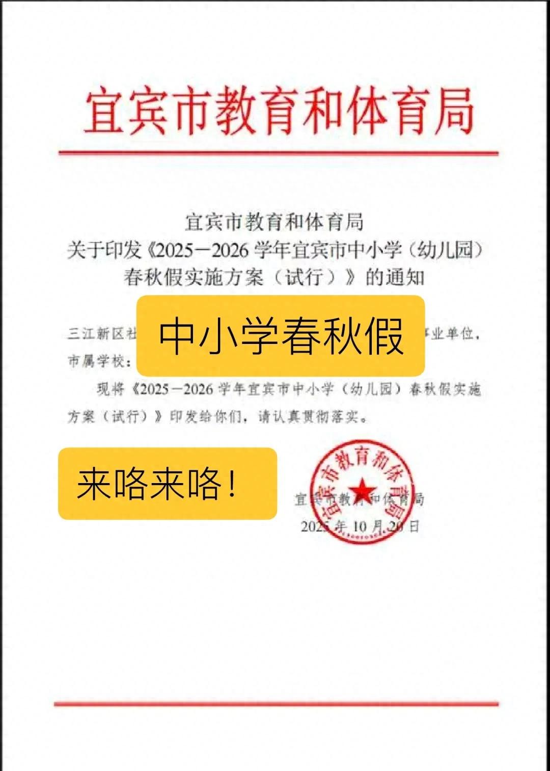剛剛,宜賓、自貢兩地宣布,將在11月開始放“春秋假”!