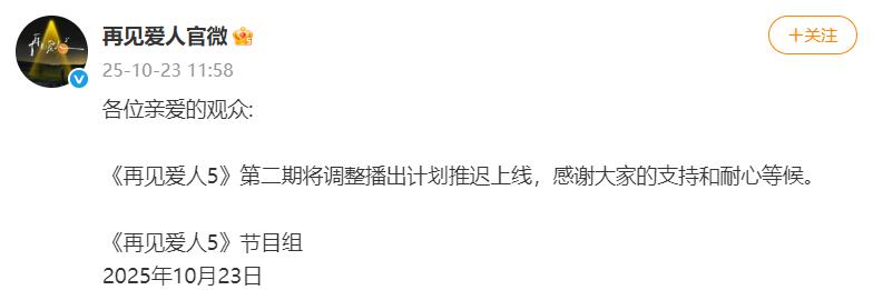 24日早些時候,據澎湃新聞報道,《再見愛人5》今日將正常播出。第二期原定昨日上線,但當天臨時宣布調整,一度引起熱議。
