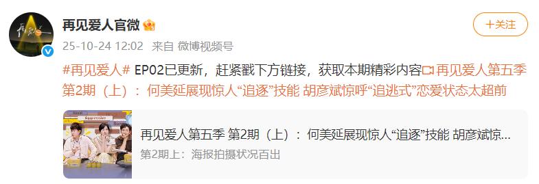 24日中午,《再見愛人》官微更新第二期節目動態。