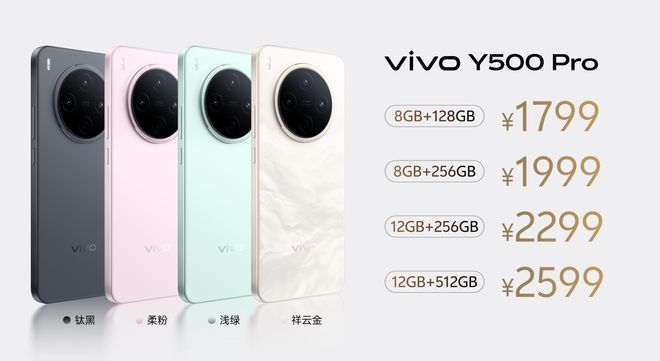 價格方面,vivo Y500 Pro 8GB+128GB版本售價1799元,頂配12GB+512GB版本售價2599元。