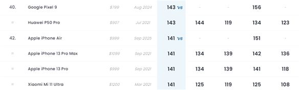 11月29日消息,DXO官微公布了iPhone Air的評分結果,綜合成績達到141分,排名總榜第42位。