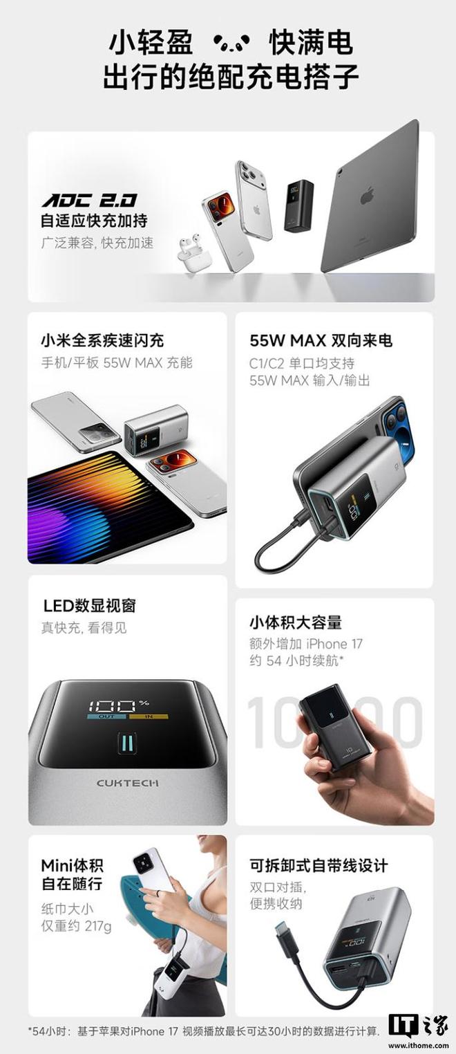 12 月 8 日消息,酷態(tài)科 10 號電能棒 Mini“Dark Knight?黑騎士”配色現(xiàn)已開售,價格 159 元,整體配置與普通版的 10 號 Mini 沒有太大區(qū)別,主要是更換了灰黑色的外殼。